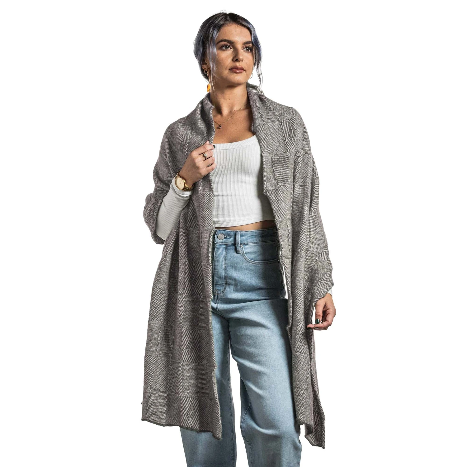 Our Premium Possum and Merino Wool – Jacquard Wrap are made from a premium blend of 40% possum fur, 50% merino lambswool & 10% mulberry silk. Feel the difference, naturally!